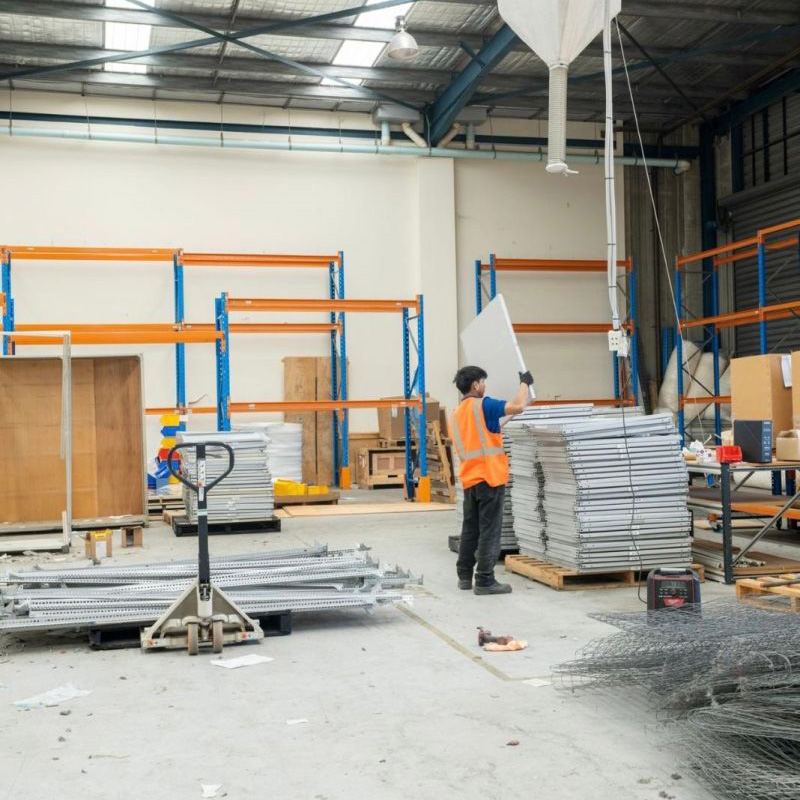 Brief: Demolish office partitions, makegood to plasterboard walls, remove racking in warehouse, paint warehouse floors, make safe to services & set to new layout.